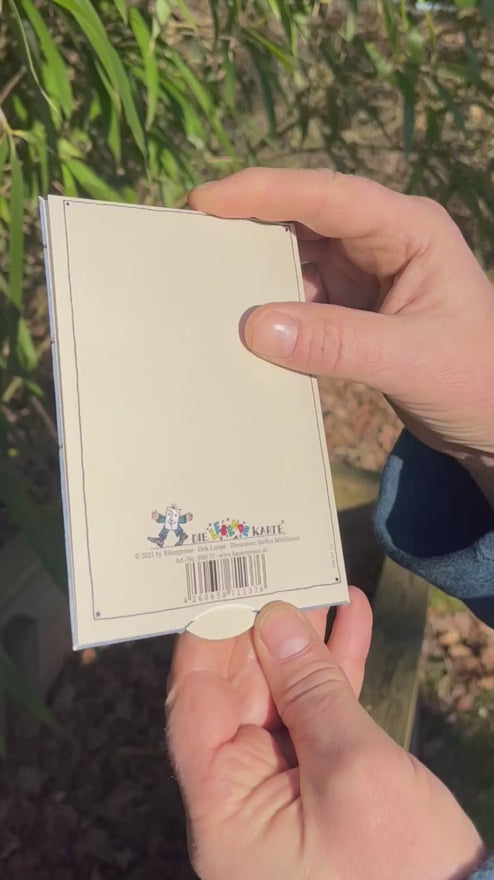 In der Karte sind so viele witzige Kleinigkeiten versteckt, dass ich jedes Mal aufs Neue überrascht bin, was zu sehen ist. Sowohl im Normalzustand als auch nach dem Ziehen an der Lasche. Äußerst gelungen.